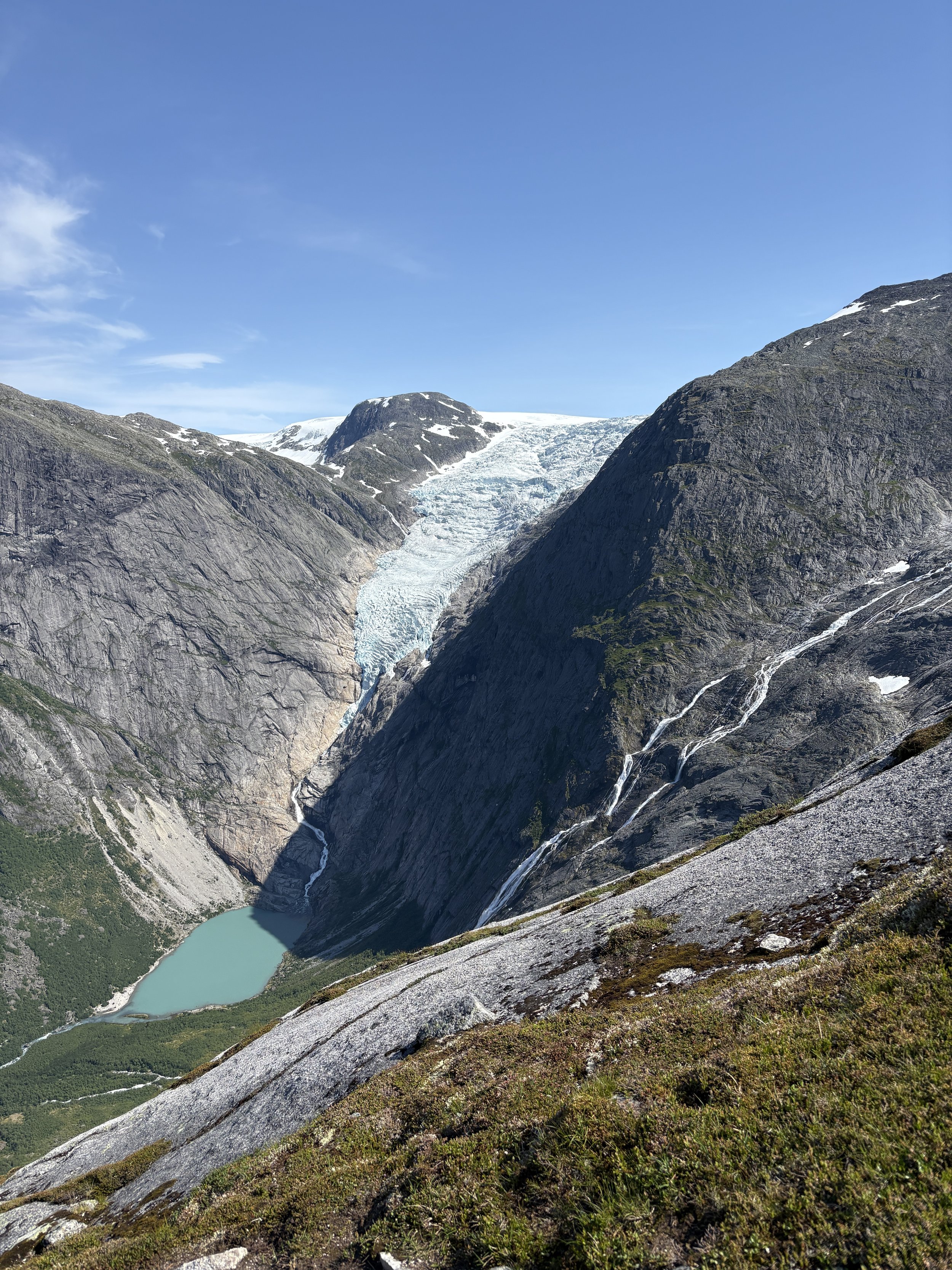 Starting point at Melkevoll Bretun. For experienced mountaineers, with steep areas. Amazing views over the glaciers and Oldedalen.